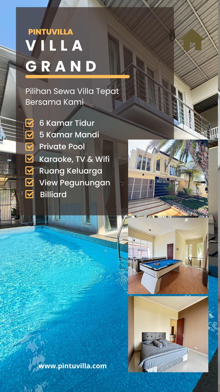 Cari villa di batu dengan 6 kamar tidur? ini dia Villa Grand lokasi di Samping/Barat Lippo Plasa/batos Batu, villa ini dengan konsep modern cocok banget buat kamu dengan rombongan 10 - 30 orang, berikut fasilitas villa :